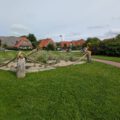 Die Außenanlage ist neu angelegt, daher muss das Gras noch wachsen. Ab Frühjahr 2023 stehen euch außerdem eine Sauna mit Außendusche und ein Sandkasten für Kinder zur Verfügung.